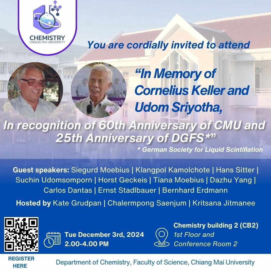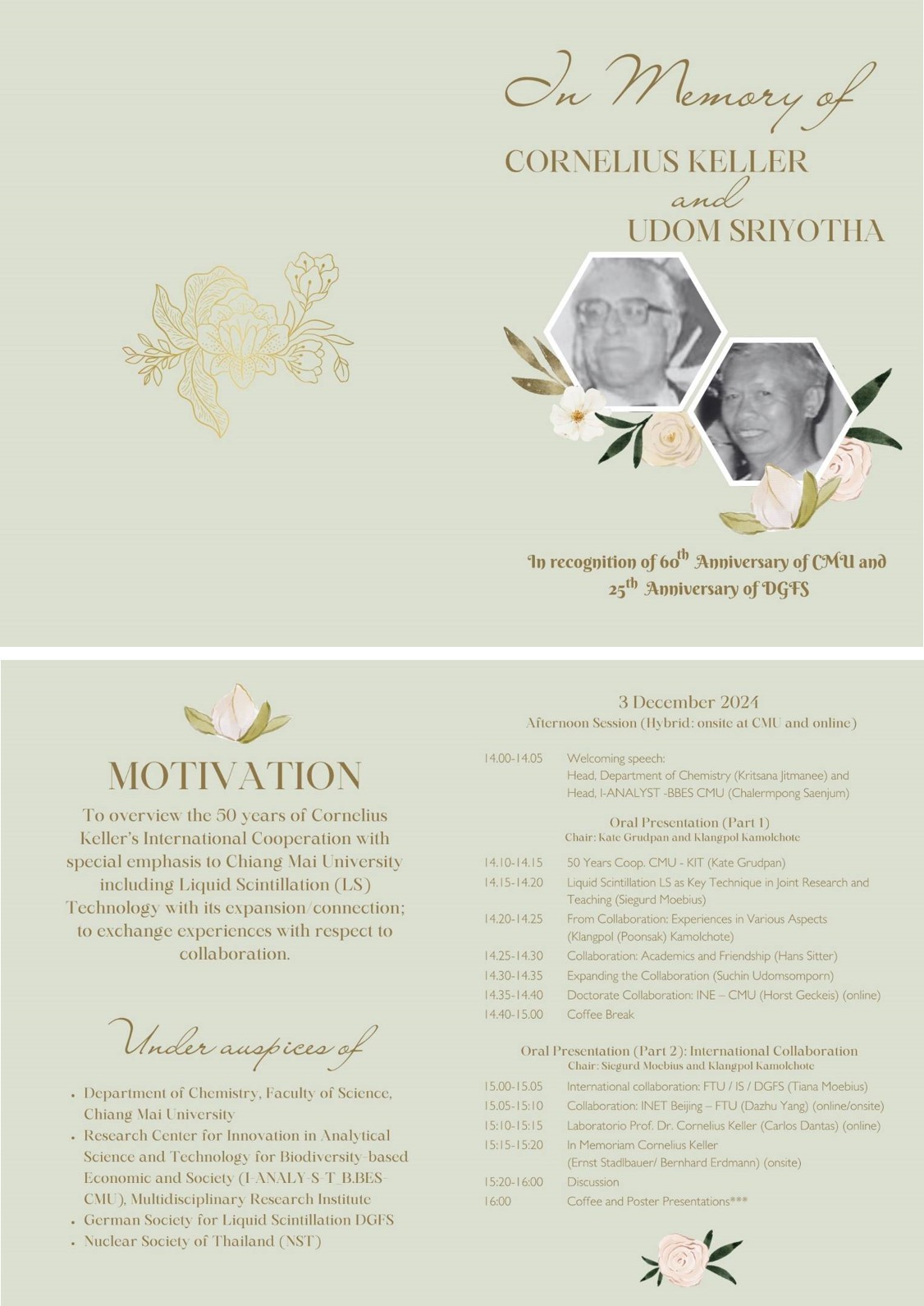 23. International Conference on Flow Injection Analysis (ICFIA) and related techniques, in Memory of Cornelius Keller and Udom Sriyotha, in recognition of the 60th Anniversary of CMU and 25th Anniversary of DGFS. The Invitation Card for 3rd December 2024.